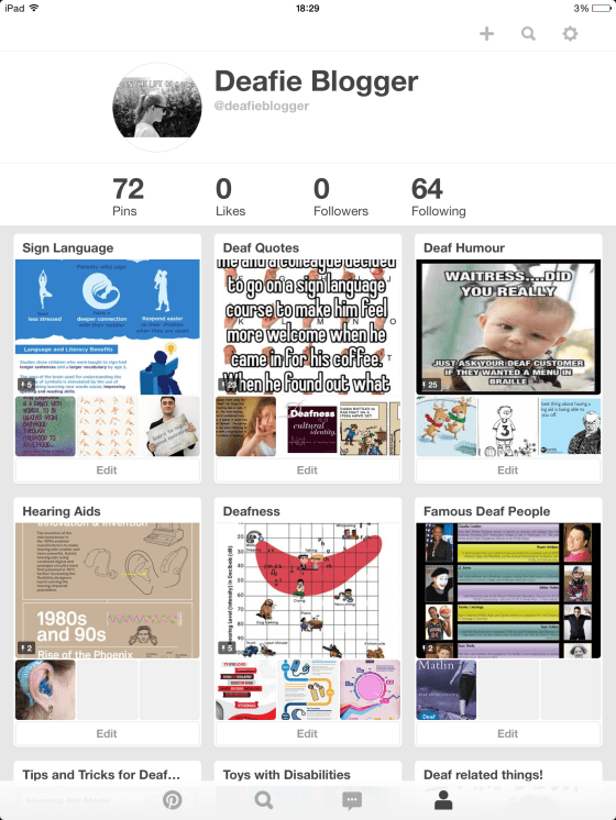I’m on Pinterest! May 30, 2015 | deafieblogger Hi everyone! Please follow me – deafieblogger, on Pinterest for all pins deaf related, from advice to humour! Love E x Share this: Click to share on X (Opens in new window) X Click to share on Facebook (Opens in new window) Facebook Like Loading...
