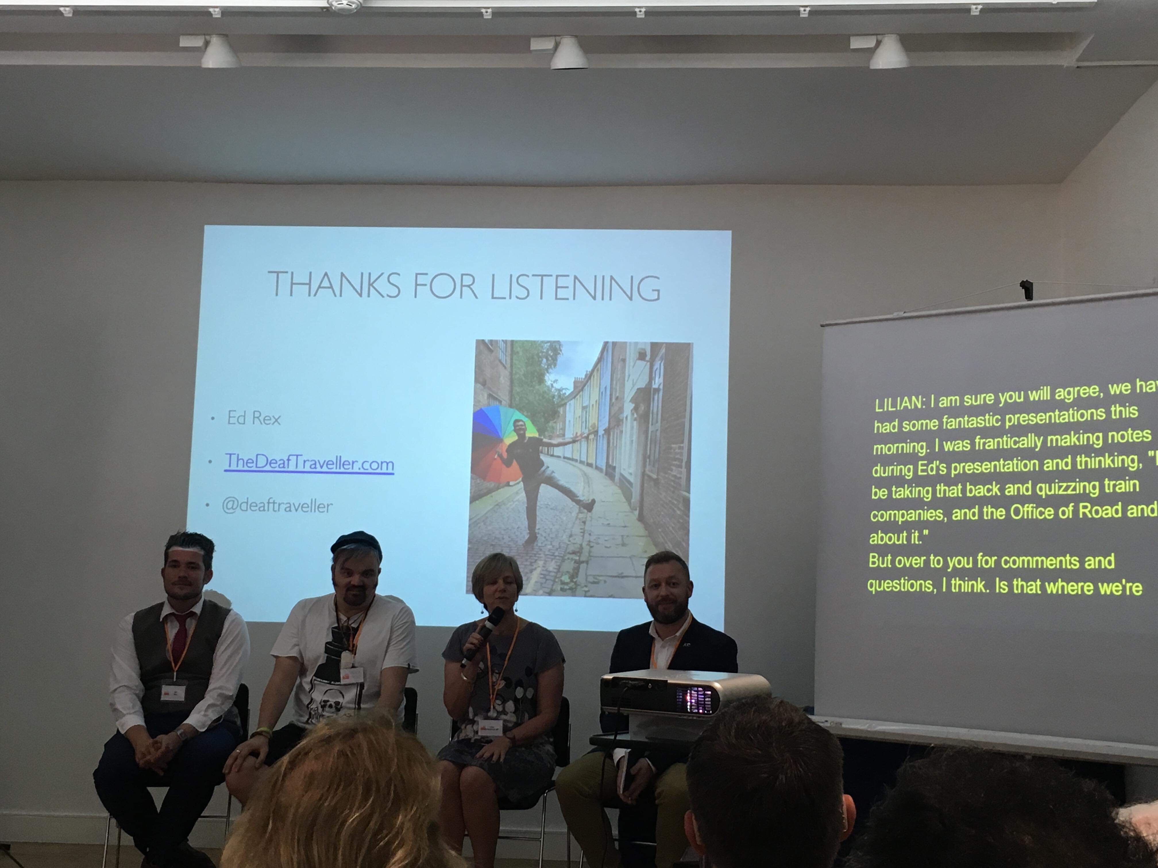 Deaf travel bloggers Nick Tedd @nicktedd and Ed Rex @deaftraveller gave presentations about their experiences travelling with hearing loss, from trains, planes and cruise ships!